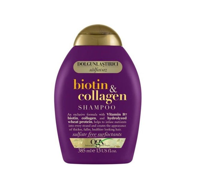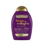 شامپو اوجی ایکس بنفش و بیوتن برند OGX، یک شامپو حجم دهنده است که علاوه بر کلاژن و بیوتین، حاوی پروتئین های و ویتامین های الزامی مو می باشد و به همین دلیل می تواند تاثیر زیادی بر ترمیم تارهای آسیب دیده مو و تقویت موهای ضعیف و مستعد ریزش داشته باشد.